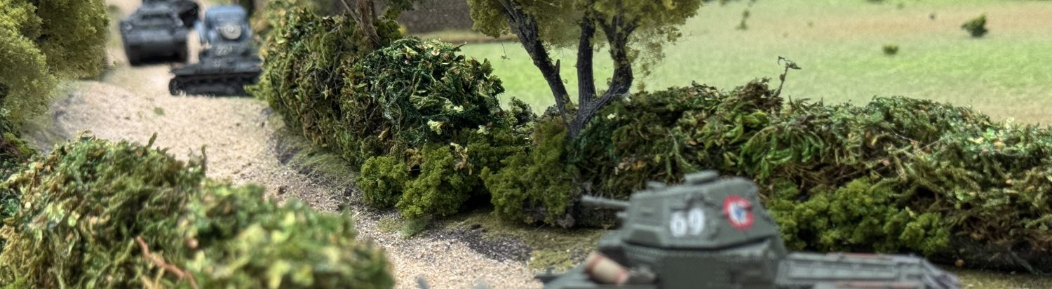This scenario is in the Battlegroup Kursk book, and is geared towards a demo/learning game of Battlegroup. It’s a Squad sized game, so relatively quick. This is played in 15mm, on a 4×6 table. I’ve matched the table the best I could, along with the army lists. The minor change I’ve made is a Soviet T-60 instead of T-70, as I didn’t have a T-70 painted. Continue reading Battlegroup: Clash of Reconnaissance (intro+turn 1)