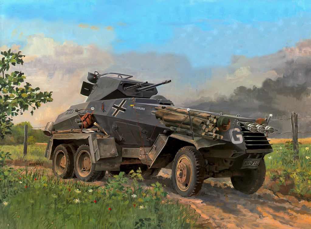 After that I wanted to have some iconic early war vehicle support. I chose the 8-Rad armored car purely for the rule of cool. At 100 points, it offers a recce vehicle with a light auto-cannon and coax MMG. Light auto-cannons are pretty great in BA as they are two shots at +2 Pen or 1″ HE on an armored car 7+ armor chassis. In Chain of Command the 8-Rad is a list 5 support choice armed with a 20mm auto cannon and coaxial MG. It sports an armor 3, AP 4, and HE 6 making it pretty potent for poking at infantry and other light vehicles.