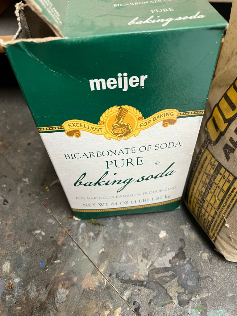 The basing mix that’s become my go to is roughly a 50:50 mix of baking soda and sand. I simply have a small dish I use to mix up a batch. I mix it with my fingers and crush any chunks of baking soda along the way.