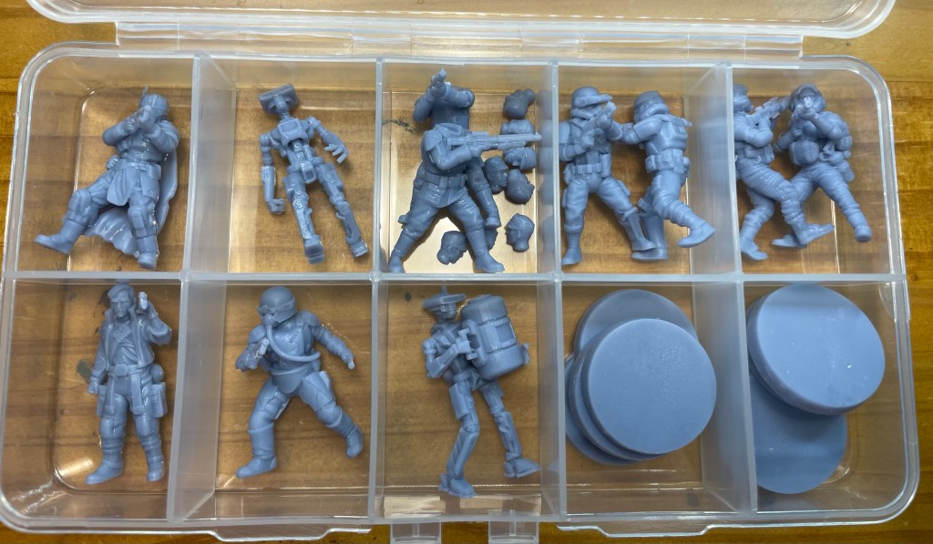 The Saturn resin printer has spit out several batches of Star Wars miniatures. A handful of minis are ready for paint and the rest are awaiting support removal and curing. I have to say I am a huge fan of the Cochin dock droids and security detail. They scream filth with a side of credits.