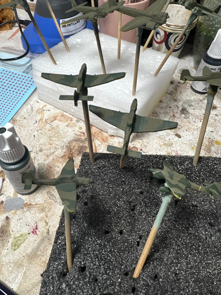 The second aerial event is the larger project. It does not depict a specific incident but instead will see the players piloting Soviet Yak-1 fighters over Stalingrad against the Luftwaffe (controlled by Ben and I). Instead of a specific fight this scenario will hopefully convey the desperate situation the Soviet air force (VVS) found itself in during the fall of 1942. This scenario has me painting 8x Yak-1s, and 8x each of Me109s, Ju88s, and Ju87s.