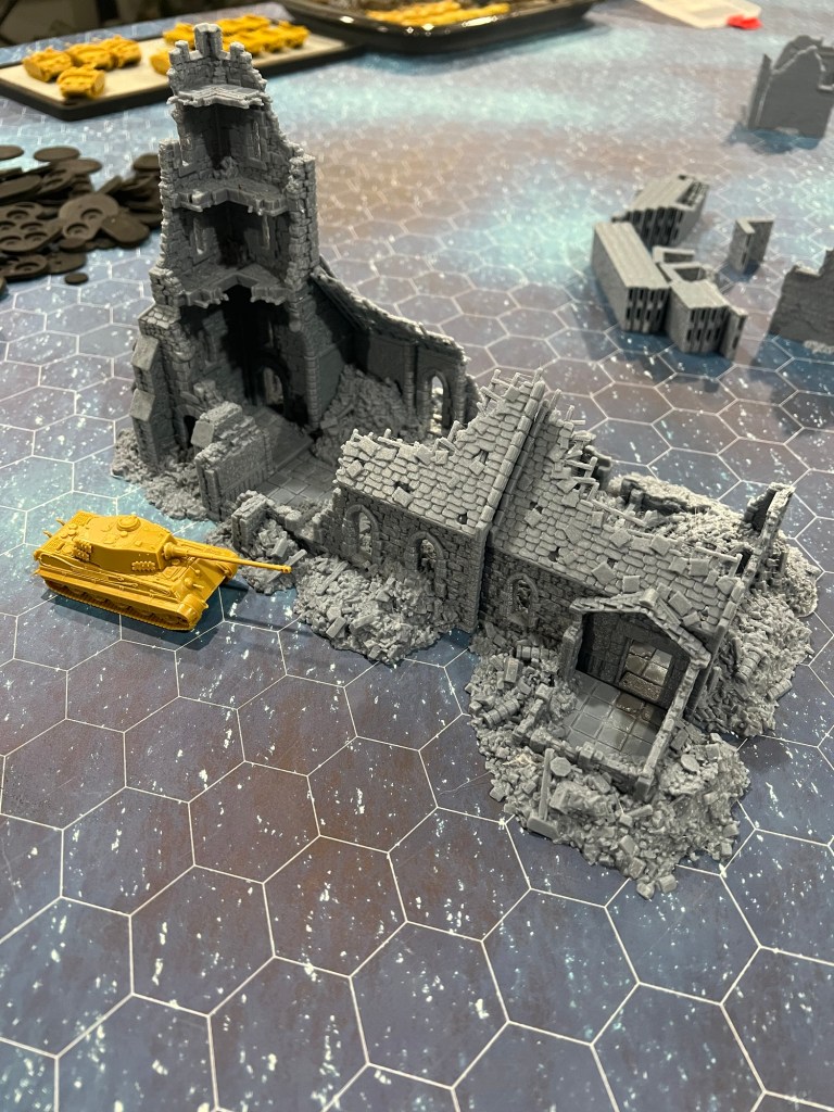Ben and I bought into 15mm heavily (he was already in deep though) (Ben editorial – Lies!) via an excellent sale in December. I’m pretty stoked about these tiny miniatures, excited enough that I’ve plowed through building most of what I bought up, got the basing figured out, and even painted a test mini. I read through the battlegroup rules along with the Overlord: Battles Beyond the Beaches supplement. I’m pretty eager to try it and I’ve got a pair of initial forces built up for paint. Since the Flames of War “Hit the Beach” starter was the core of my start I decided that the classic ‘Normandy 44’ subject will be a good place to start with 15mm. A new scale means terrain in that scale and I’m only just starting to print buildings and plan how I want to handle my 15mm terrain.