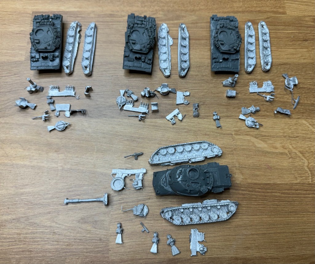 Above is the full spread of parts for tanks. It’s a good thing there are only four as these will test my modeling skills. We I have been spoiled with the plastics for a while now but these shouldn’t surprise anyone who used Battlefront kits before 2013ish (and many now are still resin). That said, I look forward to piecing these together.