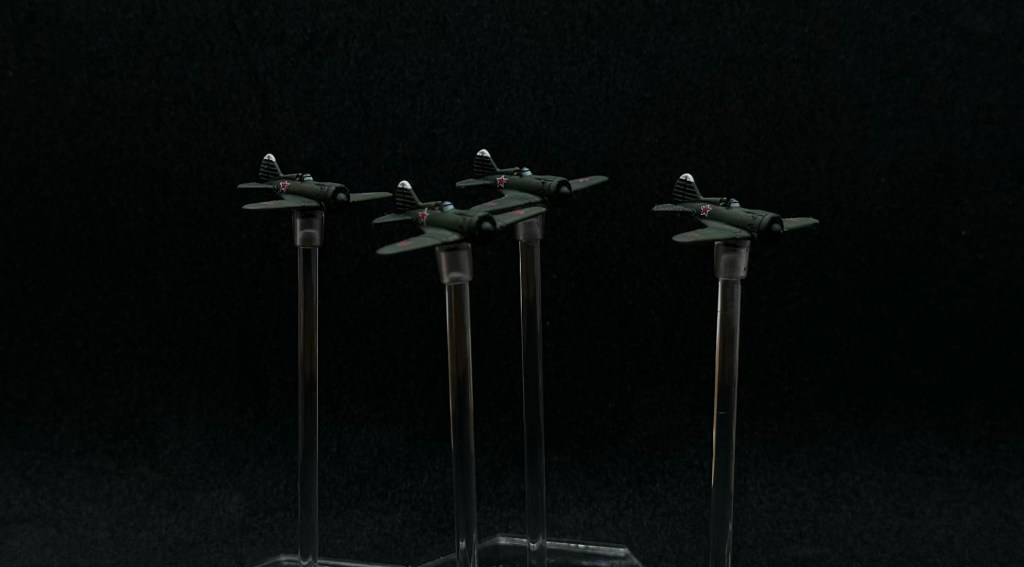Well after these little fellas languished for two months waiting for their final matte varnish the first four of my Soviet Polikarpov I-16s are finally done.