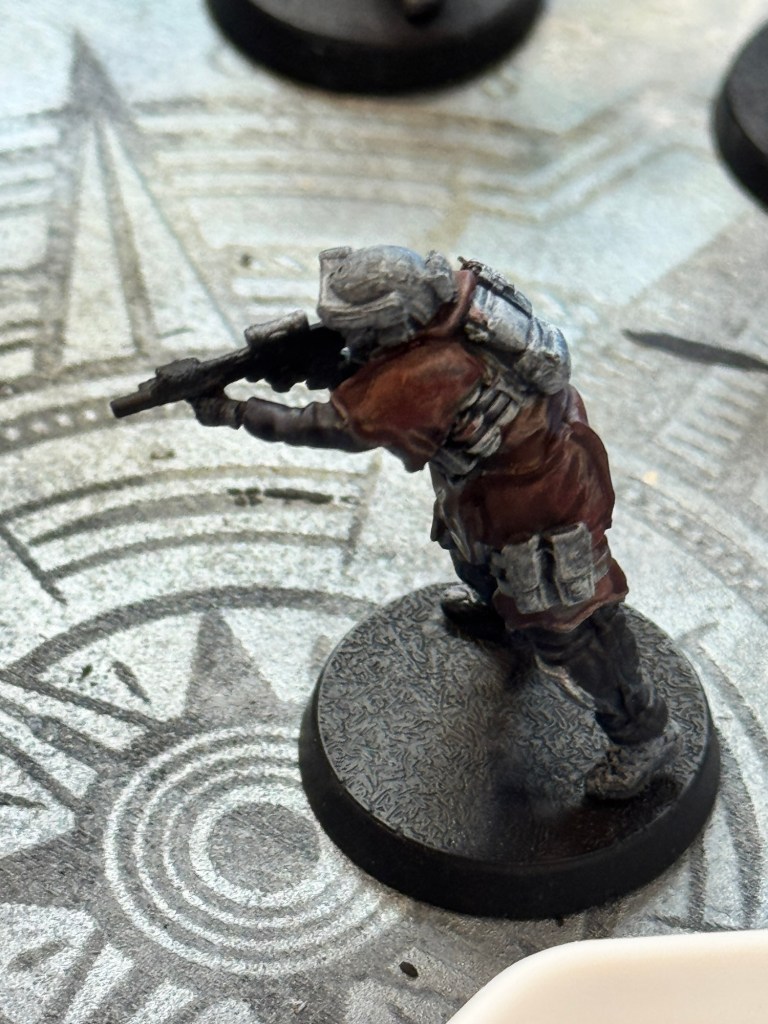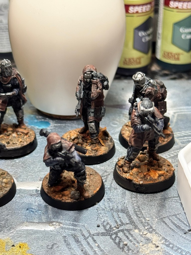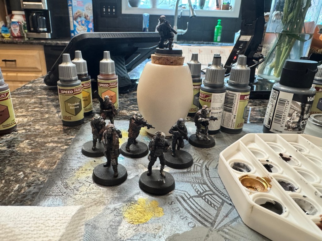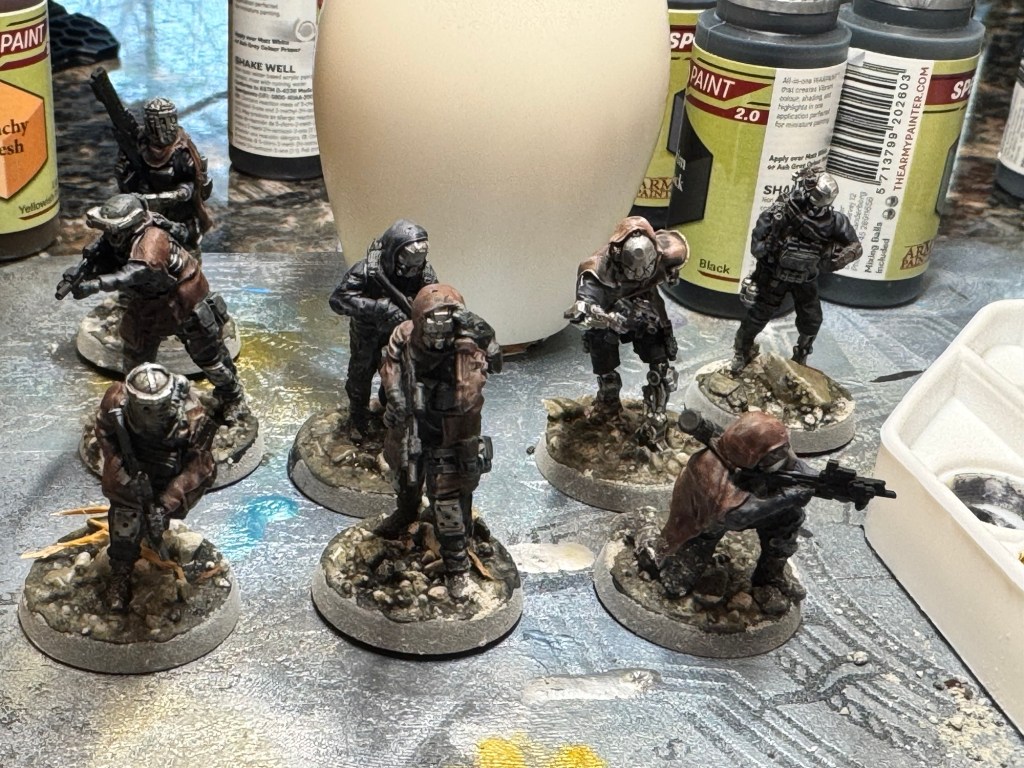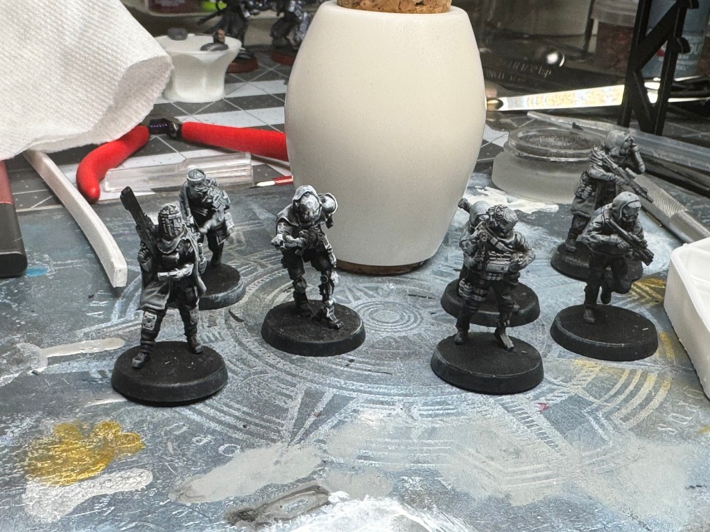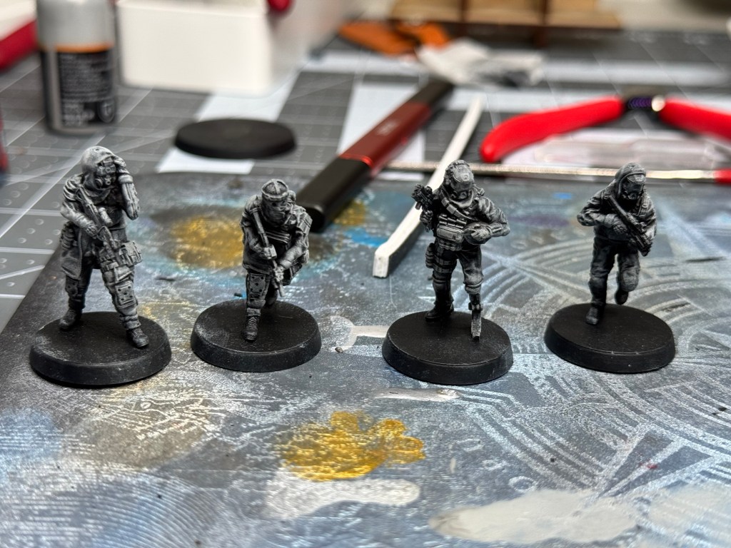 A crispy black rim and some matte AK primer, and my first squad was table ready.