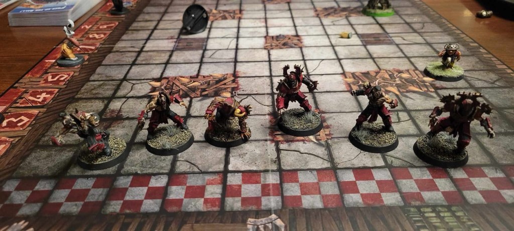 I played Blitz Bowl for the first time using my son’s amazingly well painted Khorne team vs. a team of Halflings. Despite being a learning game I did pretty well and had a lot of fun. So much so I will be getting a team and making a scratch built pitch to play on.