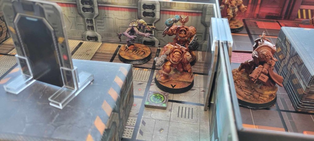 An old gaming friend ran Space Hulk- Space Marine Terminators fighting Tyranids in a desolate hulk. He had some cool spaceship tiles to represent the ship. I played classic Space Hulk way back when it first came out in the time of Rogue Trader. I will always have a soft spot in my gaming heart for it. Fun mission to find and kill the Broodlord and his minions. Great tactical game and you get to light up rooms with a wall of fire from your heavy flamer!