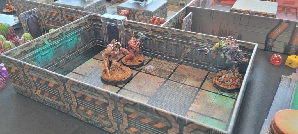 I watched a game of Sunrot and talked to the creator for a while. It was a very Grimdark card driven fantasy rpg/ skirmish game. Very intriguing and well done. A little pricey, but we’ll see….