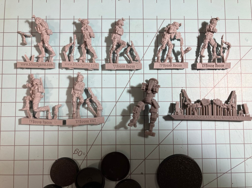 One thing that I noticed when comparing these to the BLKLST mercenaries is that the multi part pieces had a lot more to clean up. I dont know if this is an apples to apples comparison, which I would continue to be curious about through this project (see below).