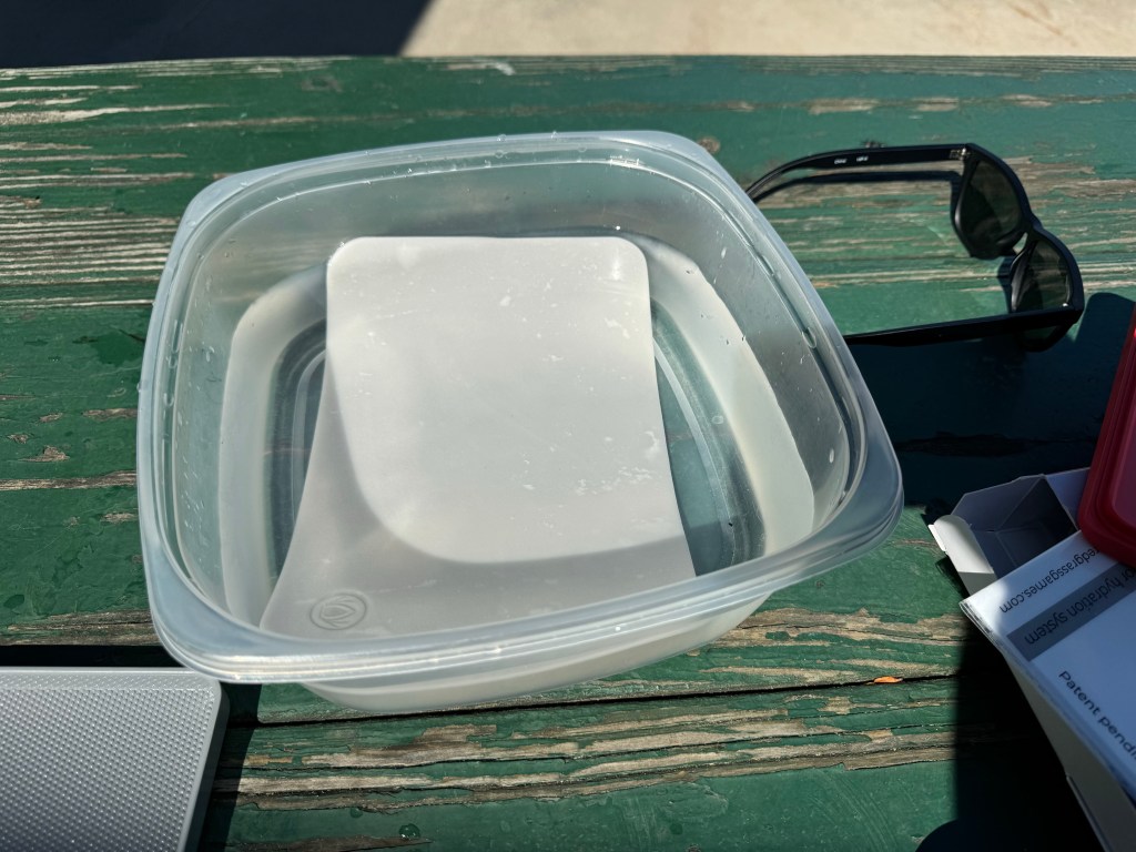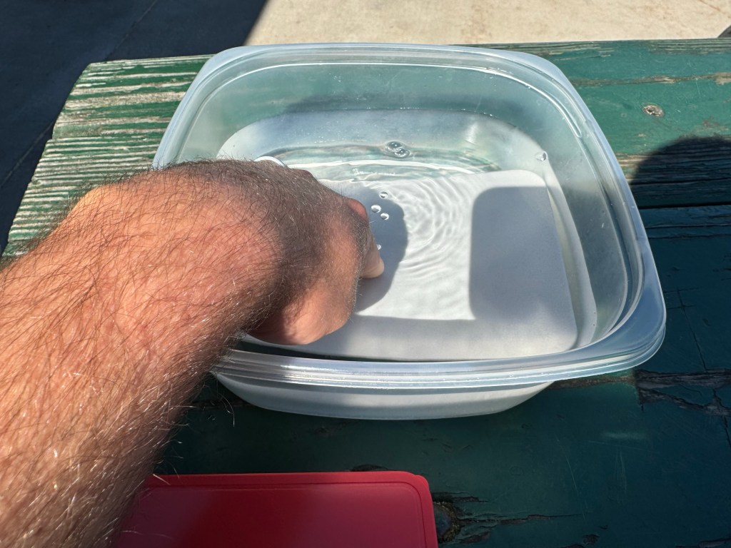 Again it’s not rocket science but I decided to document the process with pictures. The hydrating foam did take a bit of time to take water on. A little manipulation encouraged the water absorption. In the end the sponge was moist but not overly wet.