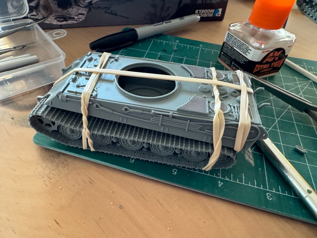 You’ll notice pictures of a sandy beach in this article. At the time I was camping on a barrier island and decided it would be a great time to build a model and write an article. I had a fun schtick about a Tiger in the sand or something when I started this article. I thought it would be clever. A Tiger crossing the Atlantic Ocean… American shores… I don’t know. But that was a year and a half ago… Well, things never go as planned; although time with my kids was more important. As my fellow dad hobbiests know, kid time comes first. But I did manage to pluck away on the kit in a few spare moments before shelving it when I got home, half done. Then I picked away at the model and ended up finishing it up a year later. Not my fastest build but oh well. But, without further ado, the Rubicon King Tiger.