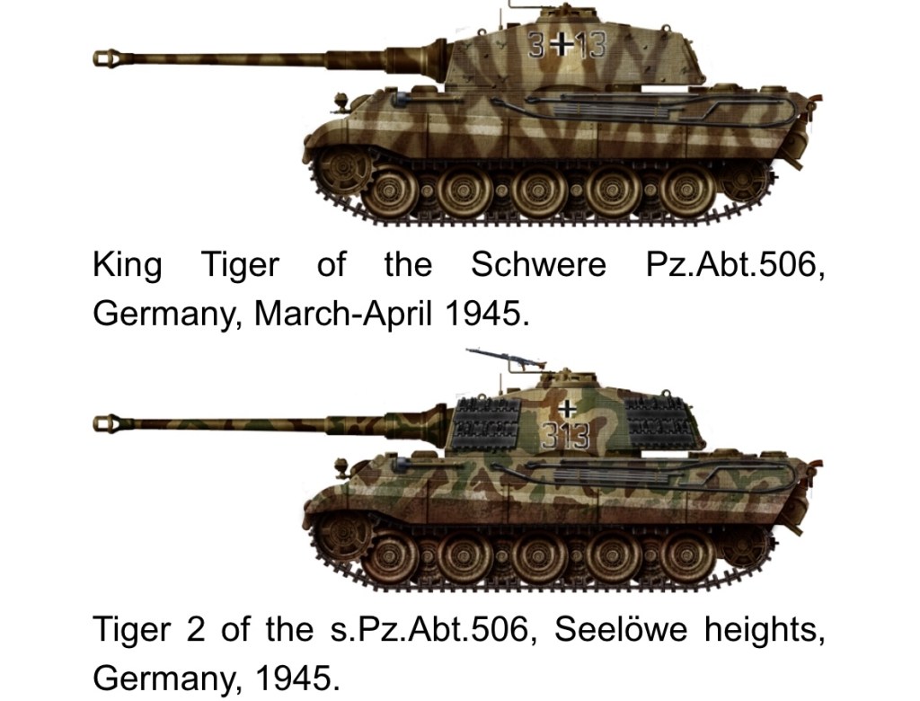 The 506th’s heavy armor sported several interesting camouflage patterns. Both hard edged and soft edged camouflage patterns appear to have been used at various times.