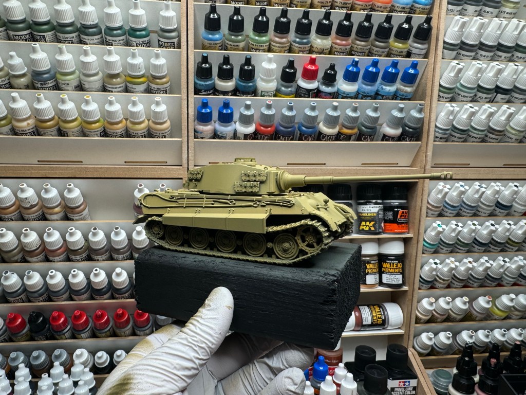 Truth be told I waffled on the paint job for a long time. I used the Dunkelgelb modulation set from AK interactive for the base yellow. This gave the base coat some nice variation. Annnnd then…. I did nothing with the King Tiger for a while.