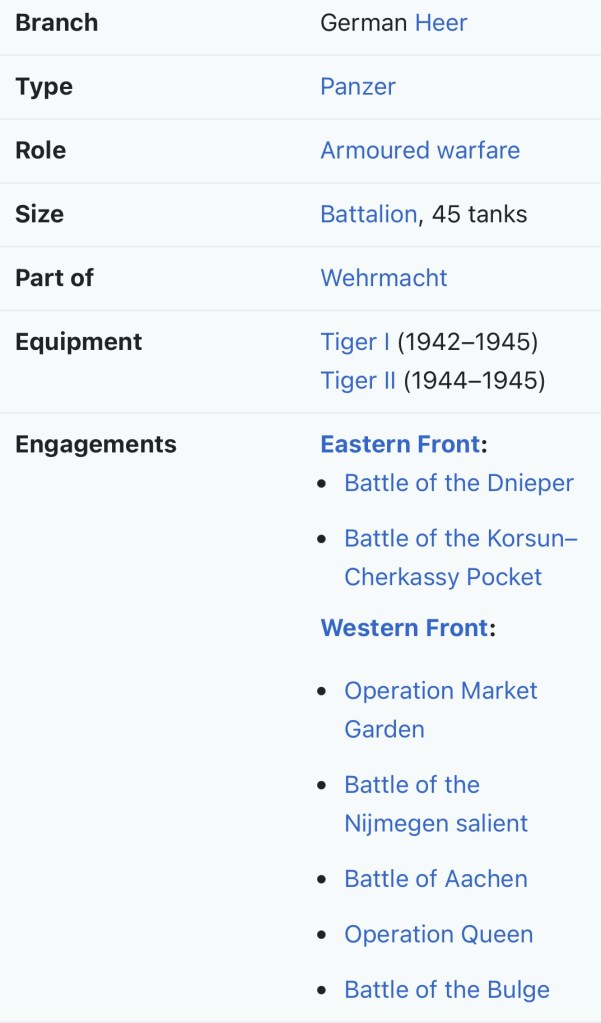 The 506th received 45 new Tiger II tanks between August 20th and September 12th 1944. It was then sent to the Netherlands where it took part in the fighting near Arnhem and Nijmegen. It fought in heavy combat through Operation Market Garden and then again near Aachen, Germany before being shipped off to the Ardennes.