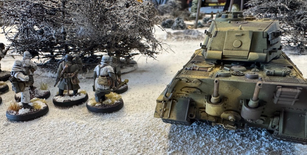 The due to its massive size this beast strains its drivetrain while moving about the battlefield. The King Tiger counts as Unreliable due to its mobility issues. If an Unreliable vehicle rolls double ones when moving it will break down. It can then no longer move for the duration of the game but may still rotate its turret and use any weapons it has. Additionally, any broken-down vehicle takes double shock.