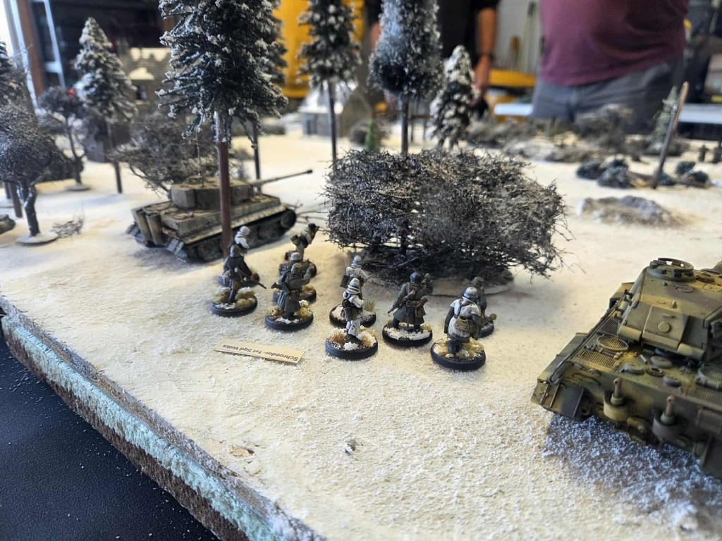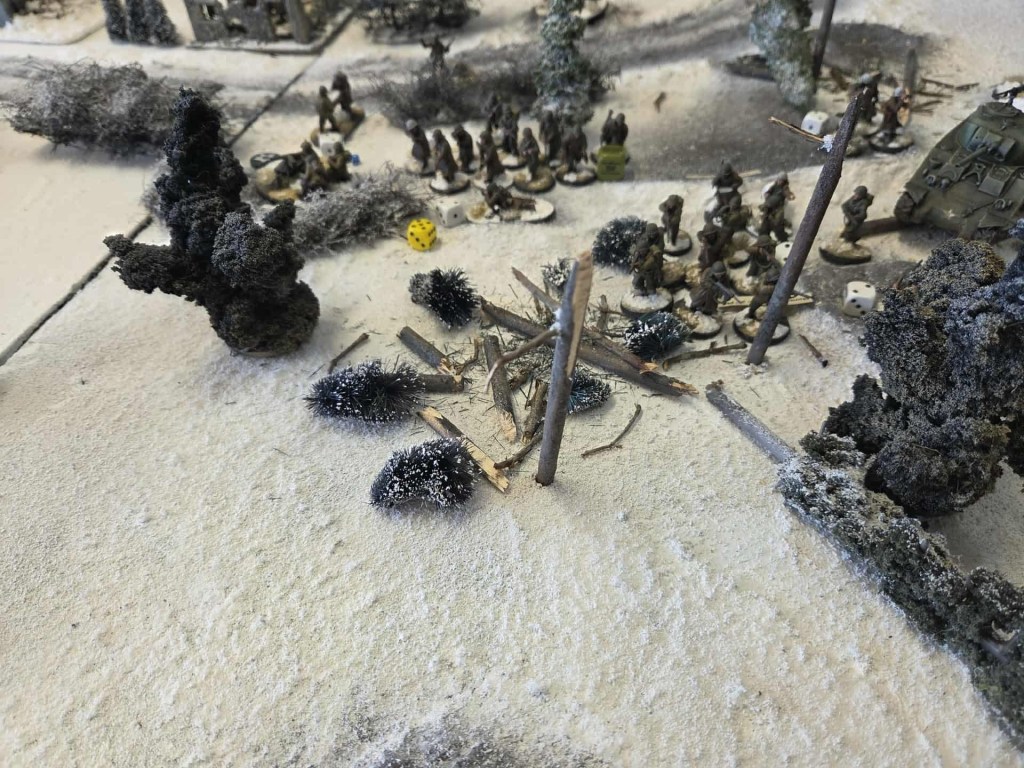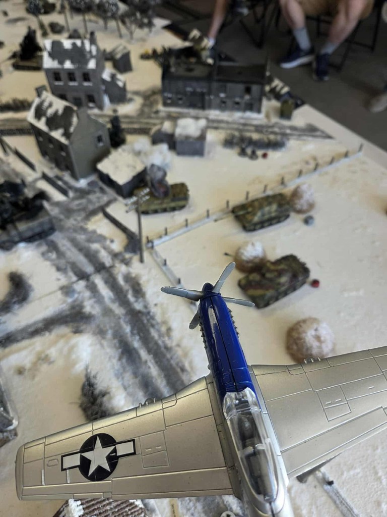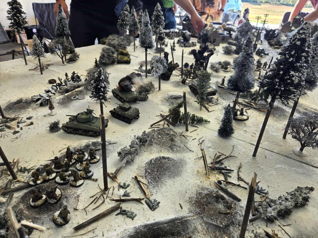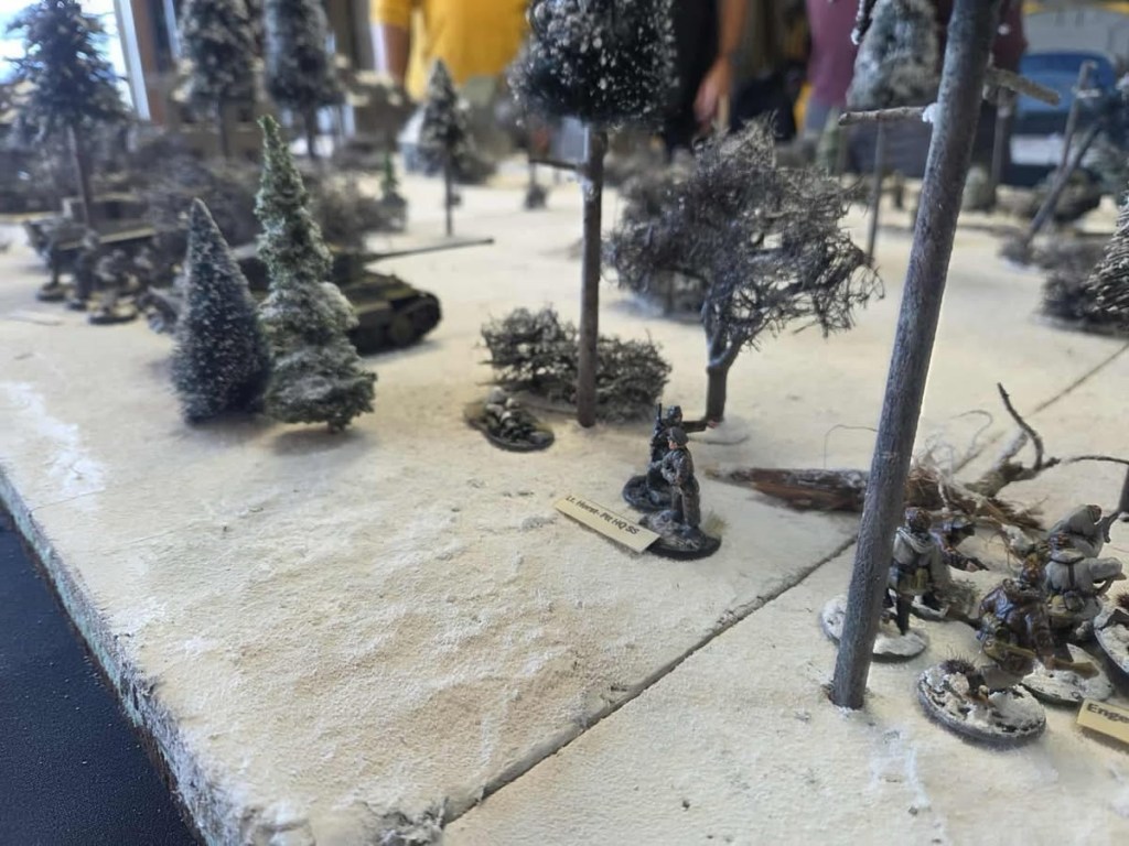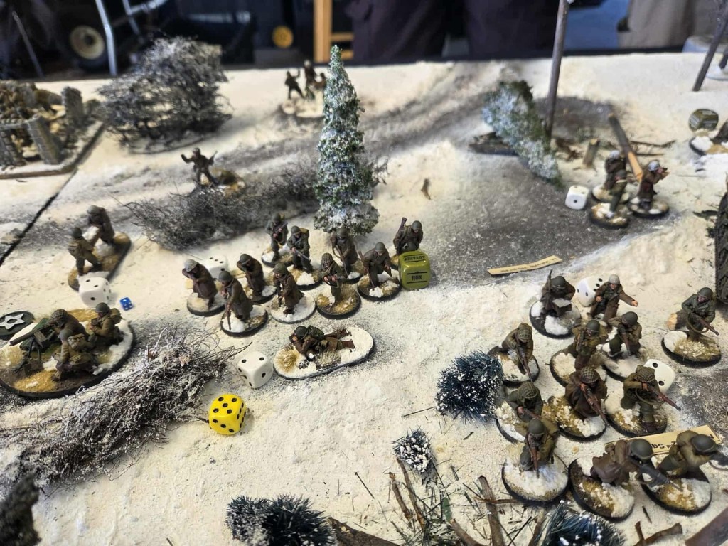 The American 101st Airborne, backed up by a small contingent of tank destroyers and Shermans valiantly defended the town from dug in foxholes in the woods and the crumbled buildings and farms at the edges of town. Breaking through the fog a motley collection of German forces lined up to make a big push and break the defender’s backs.