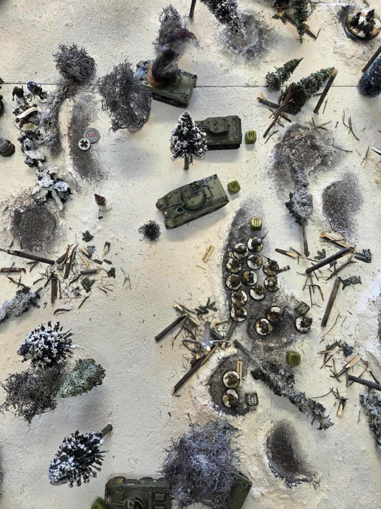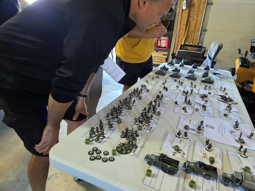 The battle VPs were based on 9 objective points worth anywhere from 1 to 5 victory points. In addition, for every 5 units destroyed, 1 additional victory point was awarded. There were several special rules in play as well; low fuel for the Germans and low ammo for the Americans. I wasn’t sure how much of a hindrance it would be to each side. The excellent dice rolls on both sides unfortunately made this a non-issue eliminating the drama these situations may have created.